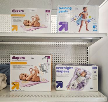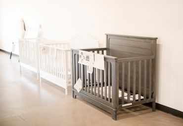 Our inventory of baby products constantly changes, but we have had swaddles, blankets, clothes, bibs, toys, strollers, and cribs in the past. If you're on the hunt for some baby stuff at good prices, check us out!